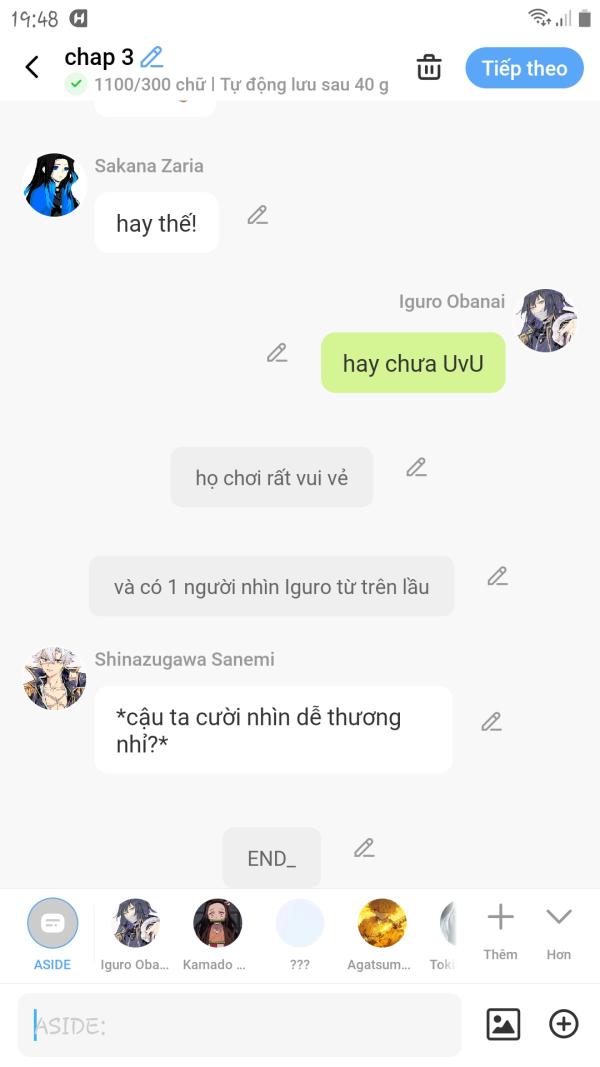 *rồi xong... SAO ANH NHỚ DAI THẾEEE* dạ để em vô chuẩn bị rồi bao trà sửa cho//đi vô phòng để vscn//