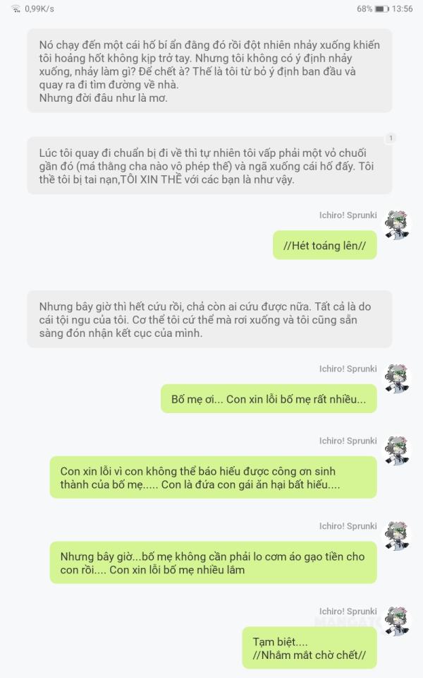 Nhưng bây giờ thì hết cứu rồi, chả còn ai cứu được nữa. Tất cả là do cái tội ngu của tôi. Cơ thể tôi cứ thể mà rơi xuống và tôi cũng sẵn sàng đón nhận kết cục của mình.